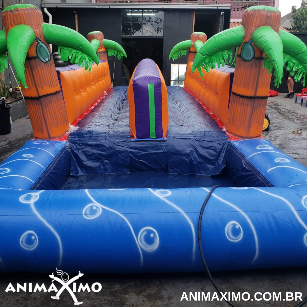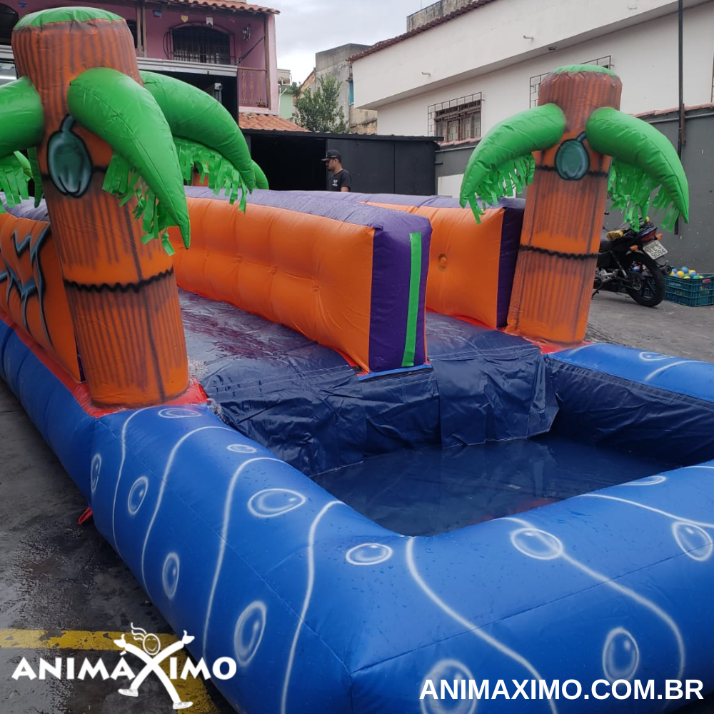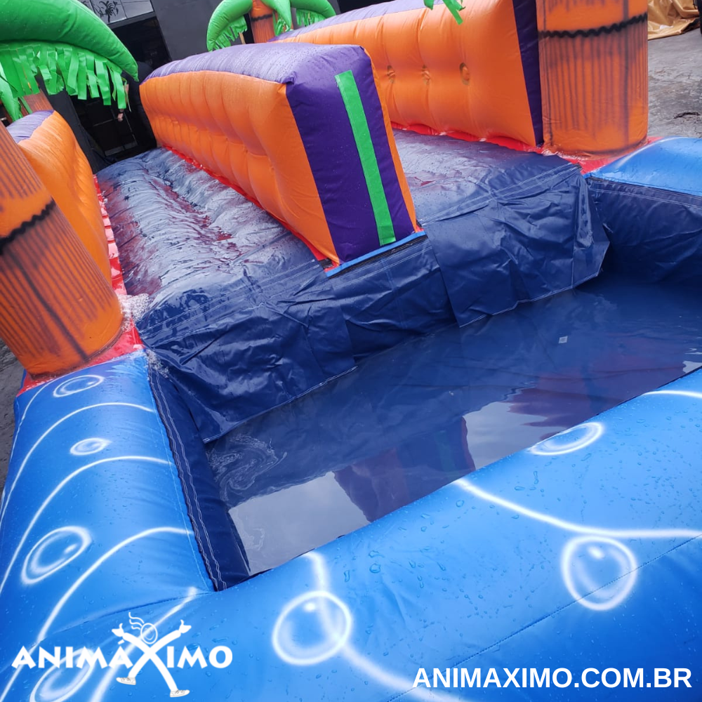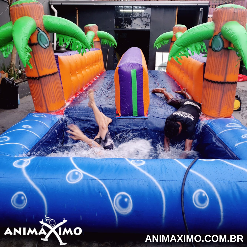 Esse é o brinquedo ideal para fazer a sua gincana ou circuito ainda mais divertido, aqui vence quem se deslocar mais rápido até o final. Pode ser utilizado em locais sem piscina, direcionando a queda para o bolsão de água no final ou ainda pode ter a queda final na piscina tornando a brincadeira ainda mais divertida e refrescante? Consegue imaginar como ele é divertido?