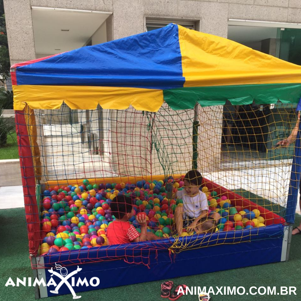 Esse é o brinquedo para se jogar, pular e brincar de esconde-esconde. É diversão que não acaba mais e as crianças menores amam e se sentem seguras. O piso é de EVA para amenizar o impacto das brincadeiras.